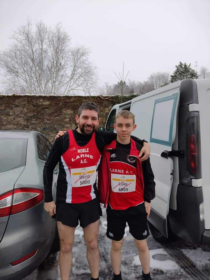 In the 5km race Davy Noble along with his son Luke joined another 200 runners on a very slushy, hilly and wet course. Young Luke got the better of Davy to finish in 30.40mins in 95th place and 15th MJ with a proud dad finishing a few seconds behind in 30.44