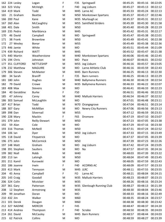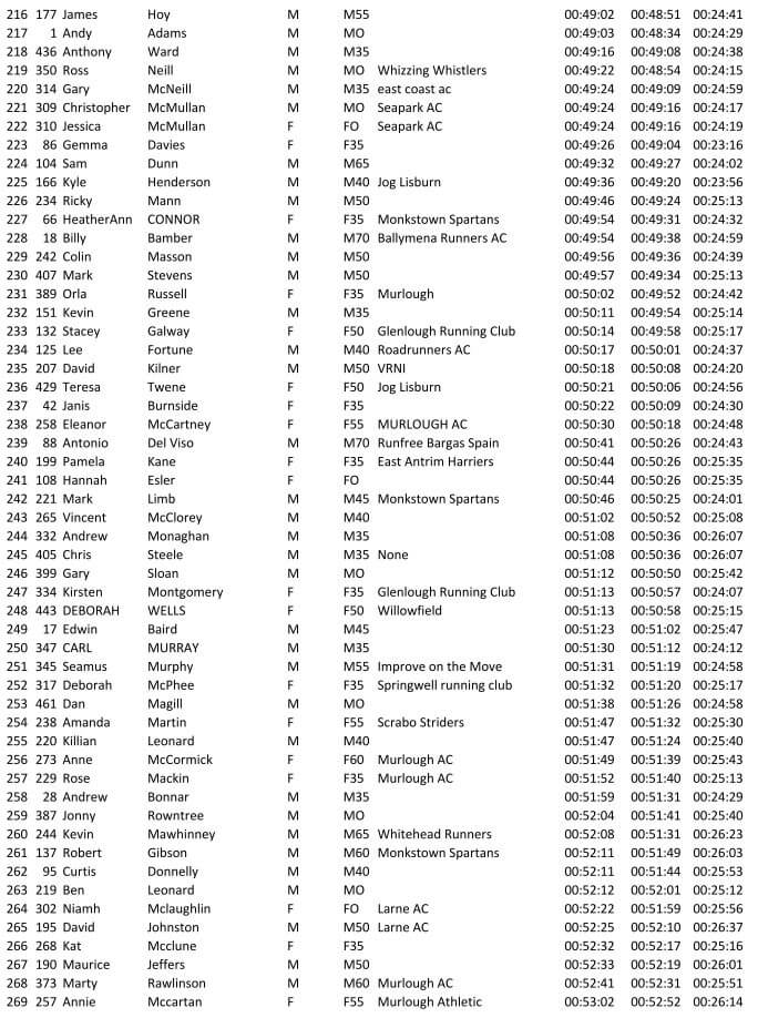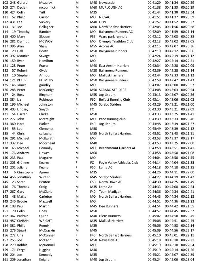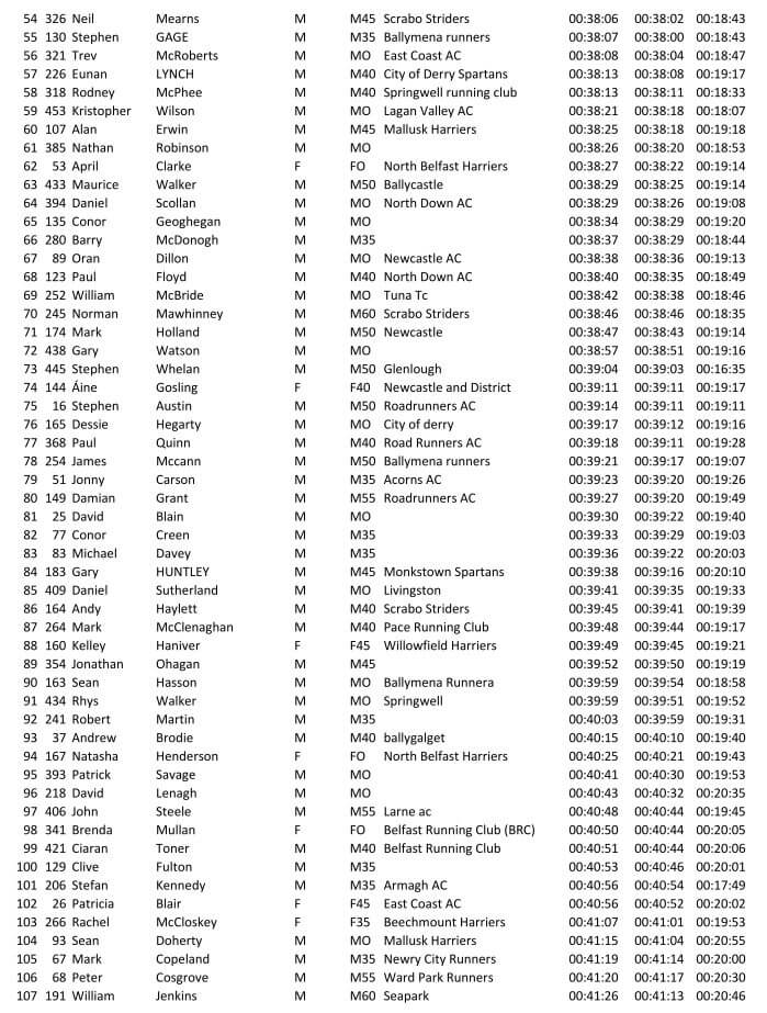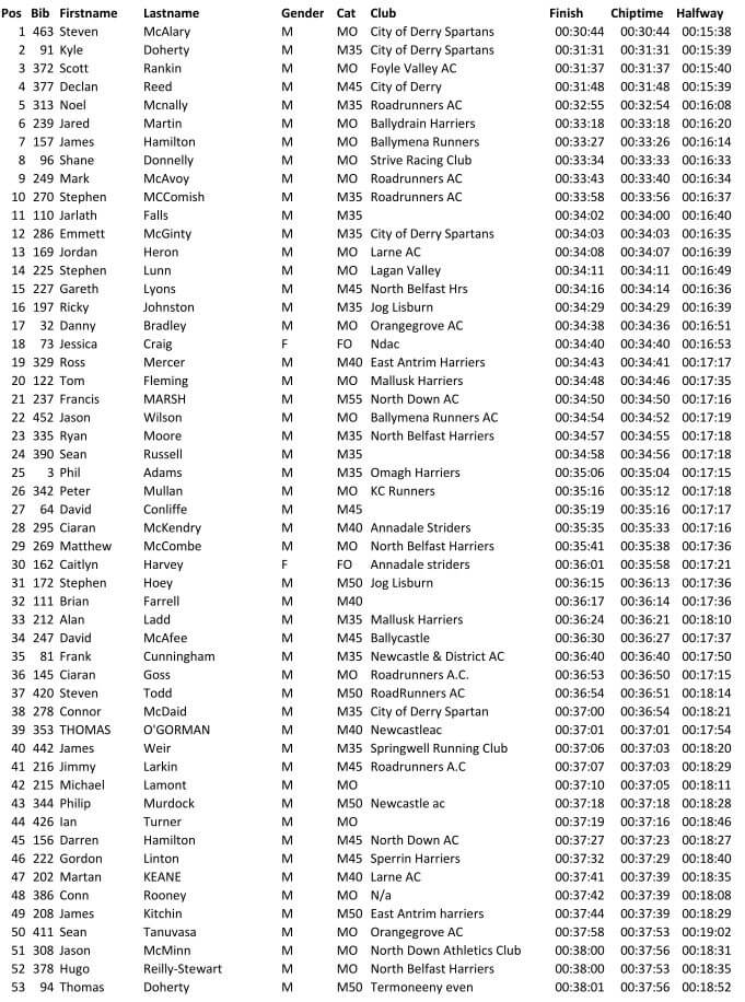 Larne AC 10K Coast Road Run 02/07/2022 – Results
