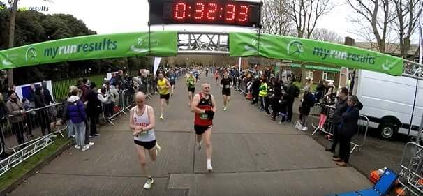 Alan taking minutes off his 5 mile race time crossing the line with a chip time of 32:12 and went through the 5 mile distance at 30:20.